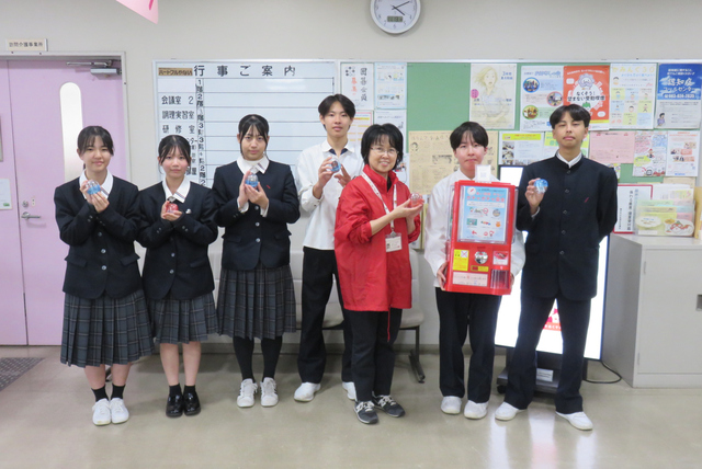 いただいた「柳井縞キーホルダー」はやまぐちフラワーランドと柳井市社会福祉協議会窓口、みどりが丘図書館、バタフライアリーナに設置しているガチャガチャ(赤い羽根ガチャガチャ募金)のカプセルの中に入れさせていただきます。