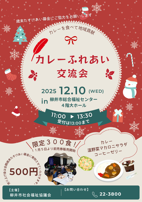 令和7年12月10日(水)柳井市総合福祉センターにおいてカレーふれあい交流会を開催します。