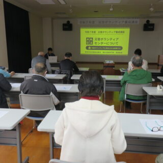 今年度は、午前に就任1年目の福祉員を対象として基礎研修、午後に就任2年目以降の福祉員を対象とした応用研修を実施しました。午前の基礎研修では本会より「福祉員の役割について」、「令和6年能登半島地震における被災地支援について」、「赤い羽根共同募金について」の説明ののち、南浜自治会 福祉員 入船一平 様に「南浜自治会における福祉員の取組について」事例報告をしていただきました。